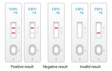 The invisible anti-FIPV antibody (T line) and secondary antibody (C line) are immobilized on a nitrocellulose membrane in result